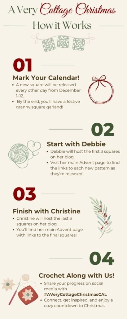 A Very Cottage Christmas is a free crochet event designed to give you short bursts of creative energy that help you through the stress of preparing for the holidays.