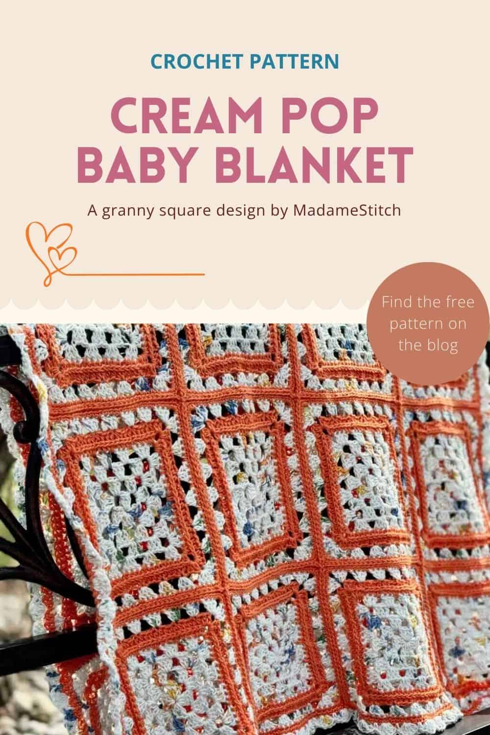 The Cream Pop Baby Blanket is a free crochet granny square baby blanket pattern in this blog post for subscribers. Scroll down to sign in and view the free version.