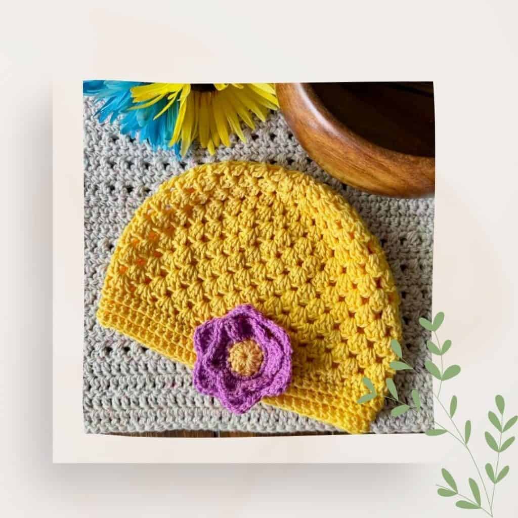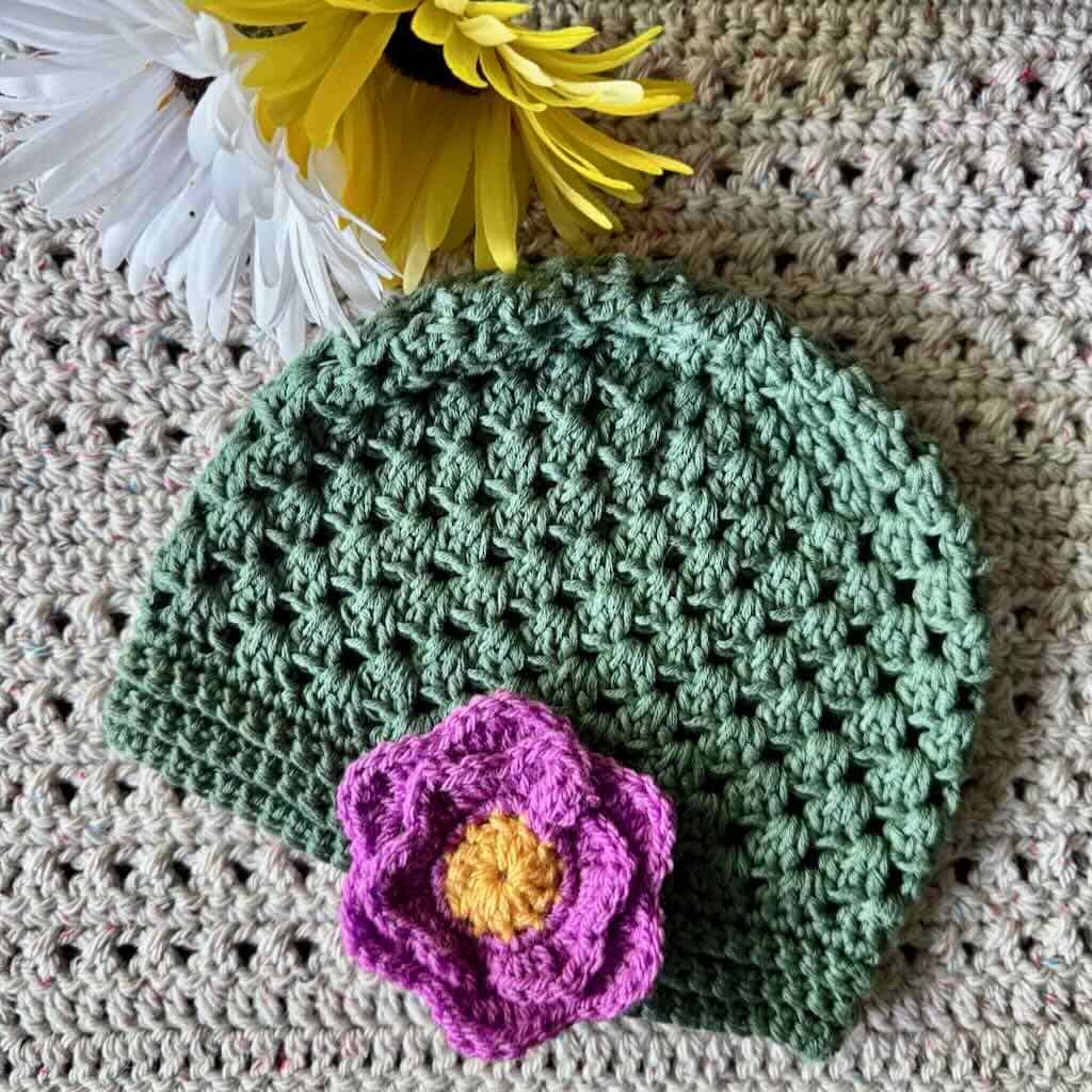 The Daisy Beanie (size Adult Small/Medium) is a free crochet granny stitch hat pattern in this blog post. Scroll down to view the free version of the Adult Sm/Med.