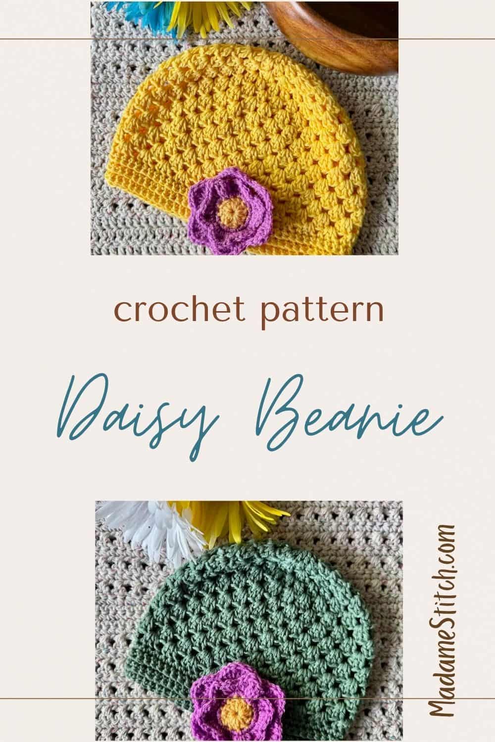 Add a fun flair to your Daisy Beanie by adding a crochet flower to the band.